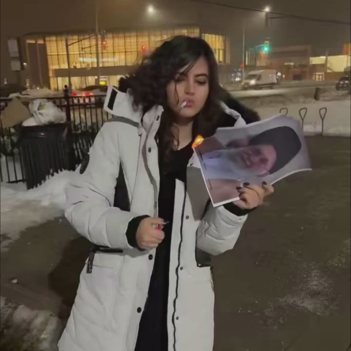 Esta sudadera presenta el diseño “T IRAN ÍA”, una pieza visual que juega con el lenguaje para decirlo claro: toda tiranía se disfraza de algo más. Dos figuras humanas en alto contraste acompañan el mensaje, creando una imagen que mezcla protesta, arte urbano y crítica directa al poder.